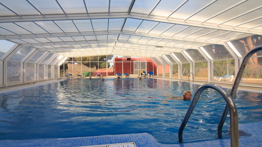 Five mature sanitary blocks provide hot water throughout (may be under pressure at peak times). Accessible Facilities in one block. Washing machines. Bar/restaurant and takeaway (all year). Shop. Outdoor pool (1/5-15/9) and indoor pool (all year). Play area. Adult exercise equipment. Some evening entertainment. Excursions can be booked. ATM. Bicycle hire. Torches necessary in the more remote parts of the site. Only gas or electric barbecues are permitted. WiFi (charged).