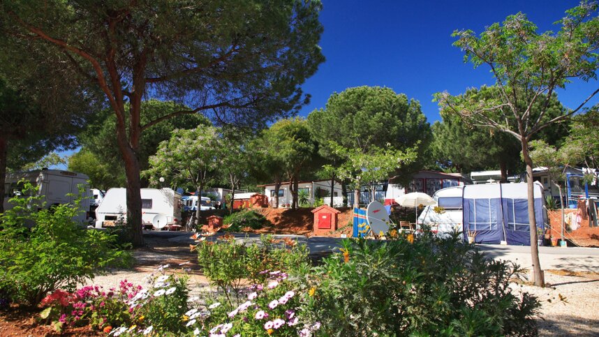 The upper areas of the site are filled with permanent pitches and bungalows. At the other side of the site you will find a fenced swimming pool with a grass sunbathing area and a new heated covered pool has been added. Close to the entrance is an Italian restaurant serving good food and with a terrace that enjoys shade and is very pleasant. A short walk over the road and down the hill brings you to a restaurant on the beach and an unofficial naturist area. A small yachting harbour with a range of restaurants and shops is a similar distance.