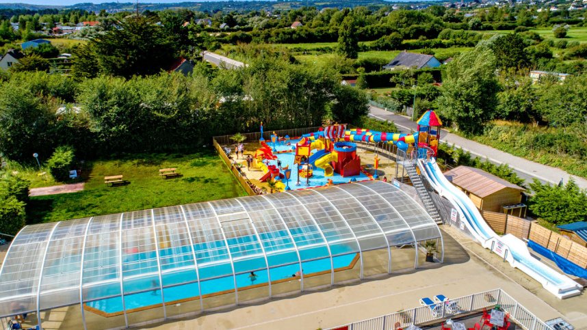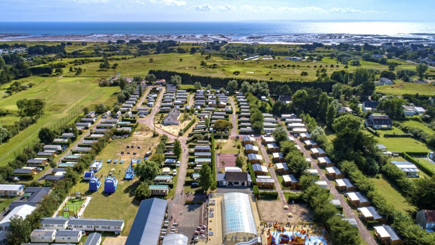 Camping du Golf is a friendly, family campsite on the western side of the Cotentin peninsula on the Côte des Isles (the Channel Islands). Day excursions are possible to Jersey. The site is only ten minutes from the nearest sandy beach, and an hour and forty-five minutes north of Mont Saint Michel. On-site amenities include a covered, heated swimming pool, a bar and a shop, and in high season a programme of activities and entertainment is organised.