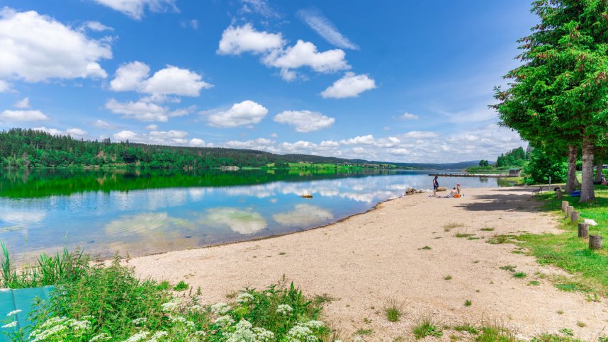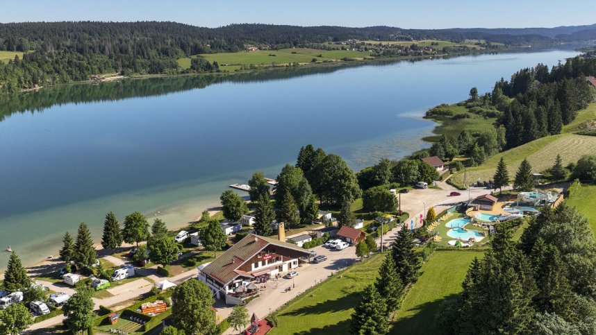 From Besançon, head south on the N57 to just beyond Pontarlier. Take the D437 signed Lac St Point and Mouthe. The road skirts the lake and through Malbuisson. Site is on right at the end of the village.