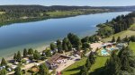High in the Jura and close to the Swiss border, les Fuvettes is a well established family site beside Lac Saint Point. The 306 reasonably sized grass pitches are separated by hedges and small trees with varying degrees of shade and many are slightly sloping. There are 200 for touring with 150 having 6/10A electricity. Only a few have views over the lake. A very good outdoor, heated pool complex includes water slides and a separate children’s pool. The site’s bar/snack bar is housed in an attractive, steep roofed building and offers panoramic views across the lake. The lake is large – over 1,000 hectares and a wide range of watersports is possible from the site including sailing, windsurfing and pedaloes.