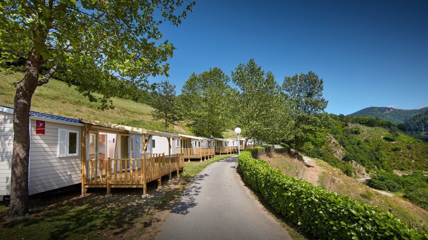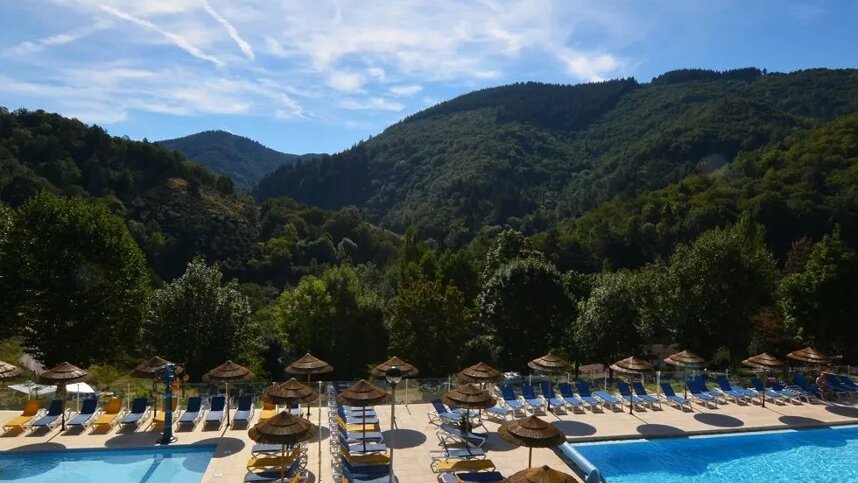 The campsite uses 5 of the 40 hectare, privately owned, wooded valley side. The site is split into two parts by a quiet road with a lower level next to the river with spacious level pitches and its own high quality sanitary facilities. On arrival using the road from Saint Sauveur-de-Montagut, park outside reception to find details for your pitch. The friendly Dutch owners have developed an extensive excursion programme for exploring this attractive area on foot or by car. This is an area of natural beauty and offers opportunities for mountain biking, walking and canoeing excursions.