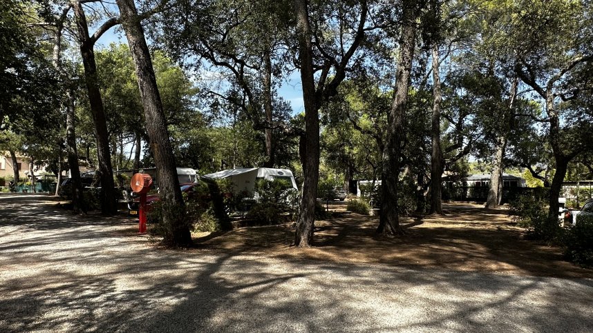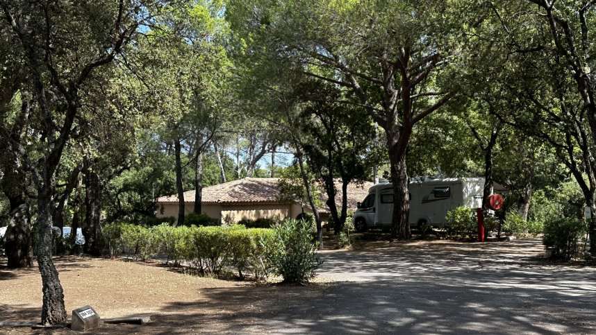 This is a beautiful site just a short drive from the sandy beaches of the Mediterranean and ideally located for touring Provence. The site has been in the same family since 1980, and now the 3rd generation is taking over the running of the site and is very proud of what has been achieved by their Parents and Grandparents. The site consists of 157 pitches, all with 10 amp E.H.U. and all offering some shade from the established cork oaks; pitches are spacious and separated by low flowery hedges, and all pitches have water and waste water drainage. Access to the site is good, and check-in was quick and efficient; you can walk around and select your pitch. Facilities on site were spotless and modern, and there is a shop, bar, restaurant and takeaway.