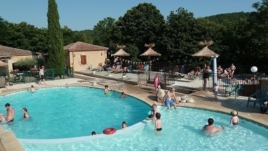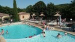 Canoe trips will bring guests back to the site. Aquagym is featured three times a week. The well-fenced swimming pool has a children’s shallow area and a jacuzzi with a panoramic view over the vines and forested valley sides of the Alune river. The campsite is within the confluence of three rivers, la Beaume, la Drobie, and Alune. It is a ten minute walk to this river where there is a pleasant bathing and fishing area. The return journey is steep to start but manageable and easier towards the end. There is also a path from the campsite to La Beaume. A small, good quality play area is provided for young children. Les Cruses enables visitors to set their own pace and without pressure for a relaxing holiday. Very large units may find the tight bends a problem and American-style motorhomes are not accepted.