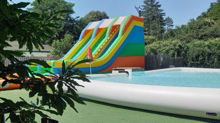 On-site, there is a peaceful garden as well as an aqua play area with an above-ground swimming pool and a giant inflatable slide. Children will have hours of fun here during the summer. You also have access to Wi-Fi throughout the site, and a big-screen TV is available to watch to keep up with all the latest sports. Shops and supplies at Les Vans are 800 metres away, or you can eat at the campsite's snack bar, which serves various meals and drinks. Themed evenings such as mussels and fries, paella, grill nights, and charcuterie/cheese board nights are regularly held here during the summer too.