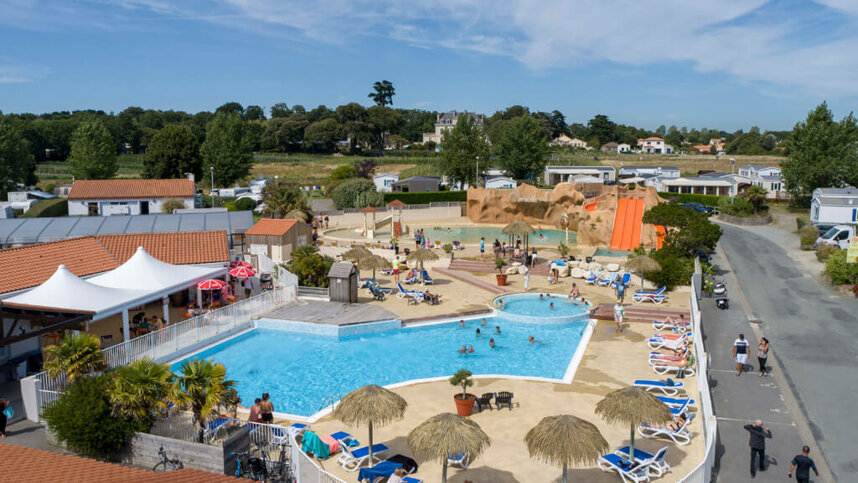 Close to the sea and the centre of the little village of La Bernerie, Camping Chadotel Les Ecureuils is a pleasant and spacious family-run site. The site has 110 touring pitches, all with 10A electricity close by and 19 with their water tap and drain. There are also 89 mobile homes and chalets for rent and a further 50 privately owned. There are many options on-site to keep everyone active while staying here. You will find an outdoor swimming pool complex with slides, a children's pool and a jacuzzi. There are many sports opportunities too with a multisport pitch, table tennis and pétanque area.