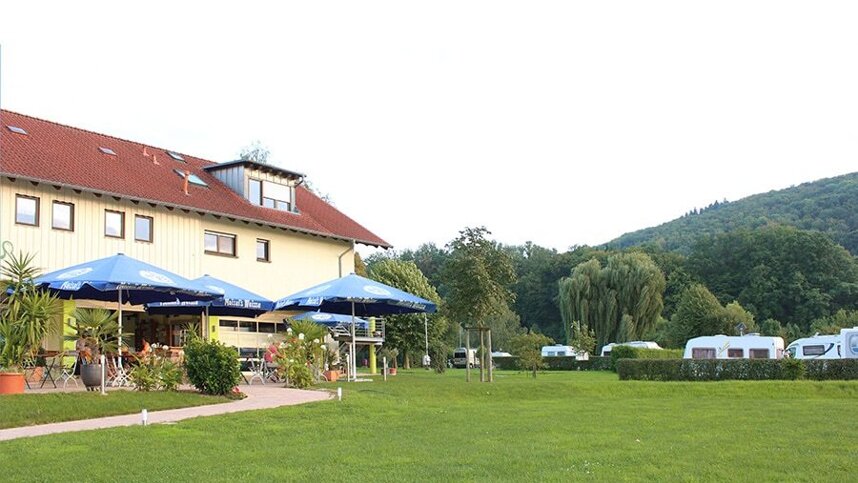 This site is situated on the banks of the river Neckar in the small town of Neckarzimmern. The pitches are mainly on grass and are quite generous in size, there are a few hardstandings. The section of the site far right from reception is reserved for groups, so away from the individual pitches. This site has more of a touring feel about it. The hook-up points 16 amps accept blue European sockets. There are lots of cycling routes directly from the site. Not far from the site is a river lock where it is interesting to watch the barges go through the lock.