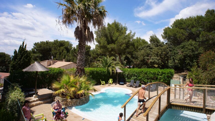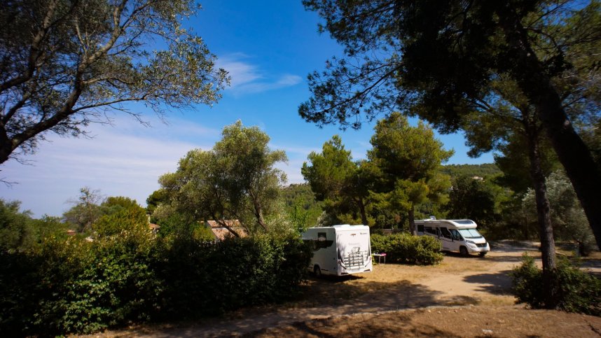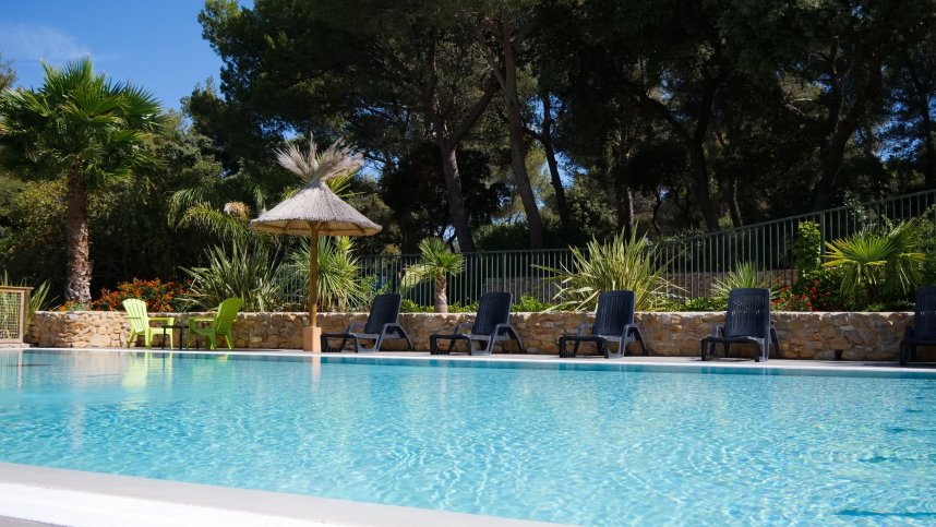 This is a very attractive, family run campsite set in hilly terrain four kilometres from the beaches of Saint Cyr. The terraced pitches are level, some with sea views, the helpful owners offering a tractor service if required. With good shade from pines, olives, almonds and evergreen oaks, there are 88 pitches for touring units, all with electricity and 35 for chalets or mobile homes. Five pitches are fully serviced. The landscaped pool complex is pretty and well kept, with a small slide, jacuzzi and a separate paddling pool. This is a friendly, small site, ideal for couples or families with younger children.