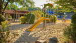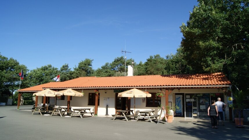 Two sanitary blocks provide showers and some washbasins in cubicles, facilities for children and accessible facilities. Laundry. Motorhome services. Small shop, bar with TV, and snack bar (all July/Aug). Games room. Heated outdoor swimming pool with paddling area (15/6-15/9). Play area. Tennis courts, multisports area, football pitch, minigolf, volleyball and fitness course. Lake fishing. Entertainment marquee. Charcoal barbecues not permitted (communal provided). WiFi over site (charged). Bicycle hire.