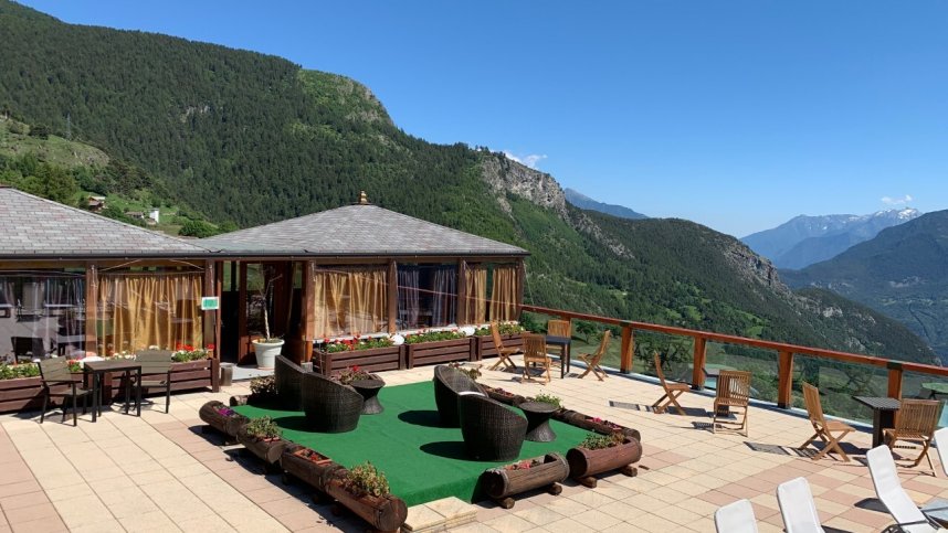 Site is east of Aosta. From A5/E25 motorway take St Vincent exit and road towards Breuil-Cervinia. From the SS26 take the SR46 from the roundabout with a mini Matterhorn. At Antey St Andre take road towards La Magdeleine and then road to Promiod where the site is signed.