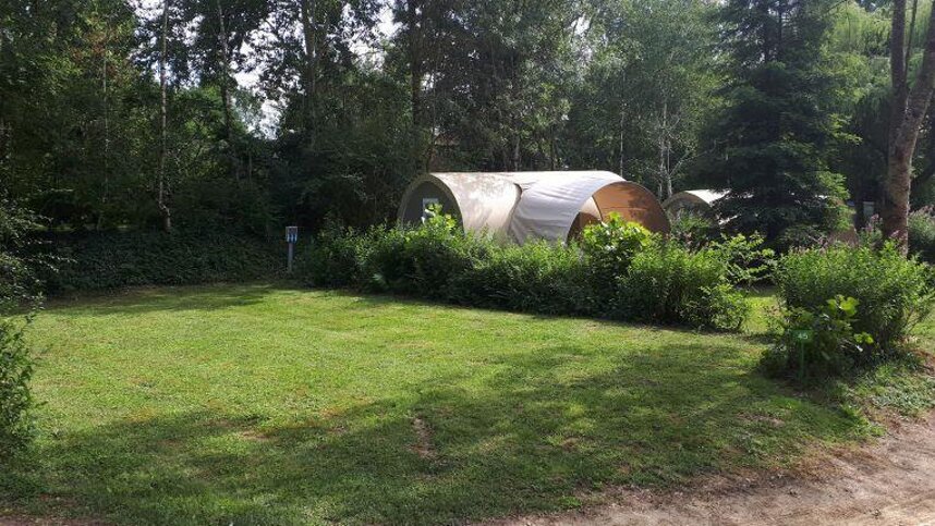 Camping de Bergougne is a small site located close to the 13th-century bastide of Villeréal in the Haut-Agenais. This restful site is a good choice for either relaxing at the poolside or exploring the surrounding country. There are 60 pitches, 48 for touring, with the remainder for mobile homes and tent-bungalows which are available for hire. The touring pitches are mainly in the shade and all have electricity. One toilet block is situated near the reception area and is converted from an original farm building – be careful, head room is limited!