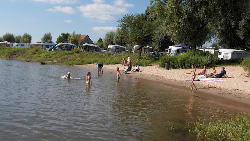 De Grote Altena lies at the heart of the Betuwe, a typically Dutch region with rolling meadows and river dykes. The site is well maintained with grass pitches and some mature trees. A playground ofers open-air chess, and a trampoline is popular with children. The site is popular with anglers, offering a small fishing pond as well as direct access to the Waal. Cycling along the river on the Polder Dyke is also a favoured activity. There is a snack bar on site with a terrace offering fine river views. Off site, the De Altena restaurant appears to be well regarded. Fresh bread can be ordered on site and the nearest village (Oosterhout) has two shops. The nearest supermarket is in Elst.