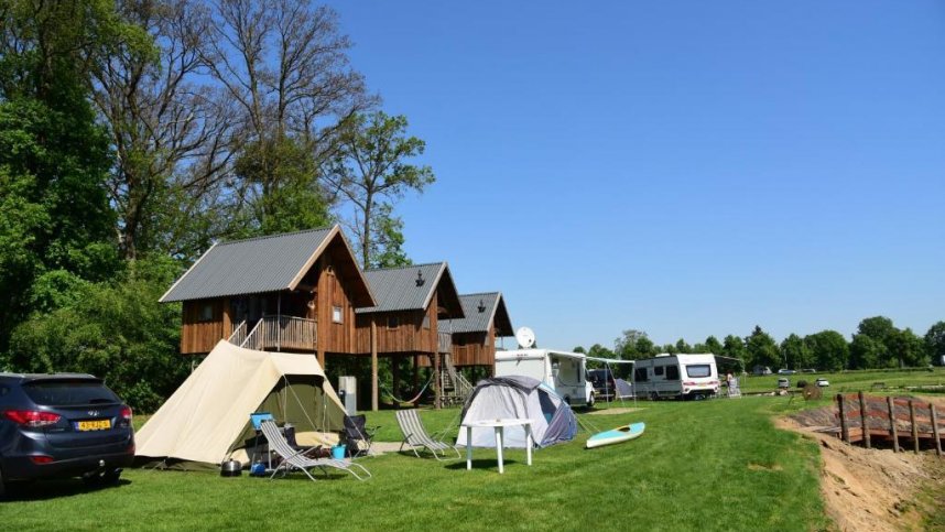 Camping De Koeksebelt is a well maintained, green site with 250 fully serviced, spacious touring pitches. All are equipped with 10A electricity, water, drainage and TV cable connections and are accessed off paved roads. Some hardstandings are available. Many of the pitches are on the banks of the river and are ideal for anglers as they can fish from their pitch. Good play areas will appeal to both children and their parents. The sanitary facilities are modern and very well maintained. The site borders a large wooded area and is within walking distance of the town of Ommen, where the amenities include a swimming pool.