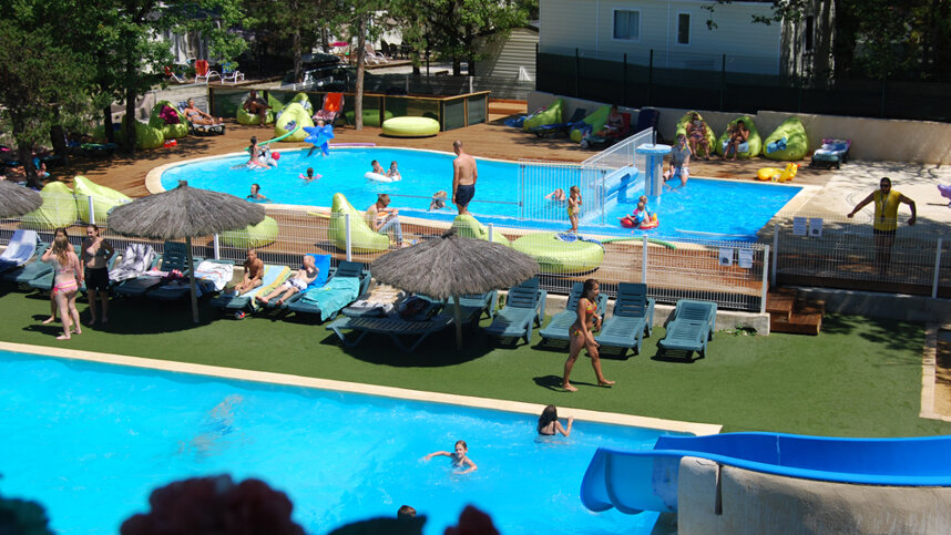 Two clean, modern sanitary blocks have all the necessary facilities including some showers with washbasins in cubicles and rooms for babies. Accessible facilities, Washing machines. Shop. Bar, restaurant with terrace, and takeaway. Two heated swimming pools with slide and loungers, one with good mobility access. TV/games room. Large play area. Tennis. Wellness centre with sauna, jacuzzi, Hammam and massage (charged). Canoe, kayak and bicycle hire. Fishing. River bathing. Internet point. No charcoal barbecues allowed. Communal barbecue area. WiFi throughout (charged in July/Aug). Chalets to rent. Torches necessary.
