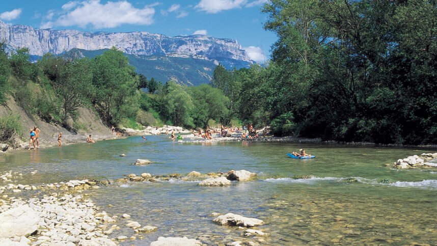 Situated on the edge of the river in the narrow Drôme valley, this site is within walking distance of the historic market town of Die, famous for its Clairette de Die sparkling wines. There are 163 pitches with 93 good sized, level, stony pitches for touring. Laid out under pine trees offering some shade, all have 5/10A electricity, although long leads may be necessary. The site is not suitable for large outfits. There is a full programme of events for all the family in July/Aug. The multilingual Belgian owners will offer you a warm welcome.