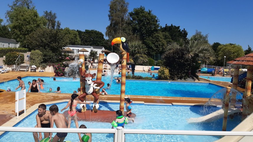 There are many campsites in this area but la Piscine is notable for the care and attention to detail that contribute to the wellbeing of its visitors. Created by the Caradec family from an apple orchard, the 199 level, grass pitches are of a generous size and are separated by an interesting variety of hedges and trees. Water, drainage and electricity points (10A) are provided, normally one stand between two pitches. Several mobile homes are also available for hire. The small bar and takeaway with terrace overlooking the pool complex provides a relaxing focal point. A quiet site, set back from the sea, la Piscine will appeal to families looking for good quality without too many on-site activities.