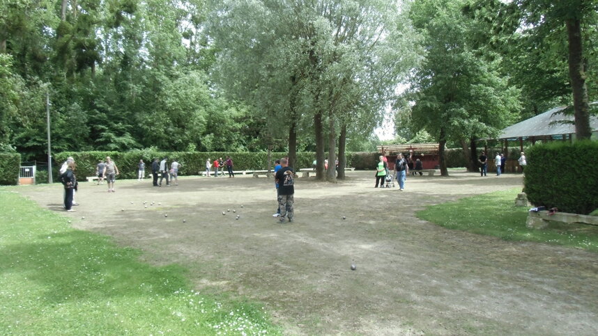 In the heart of the Oise valley, close to Chantilly and within striking distance of Paris, Camping de l’Abbatiale consists of a small traditional campsite of 30 pitches, a section with 25 mobile homes to rent and a large area of 245 pitches devoted to residential and seasonal units. Ten pitches have hardstanding, the rest are on level grass including a pleasant little group, separated by hedges, round a central grassy area with a covered picnic table. Electricity (6A) and water connections are available, and five have their own electric connection, tap and drain. Mature trees offer some shade in places.