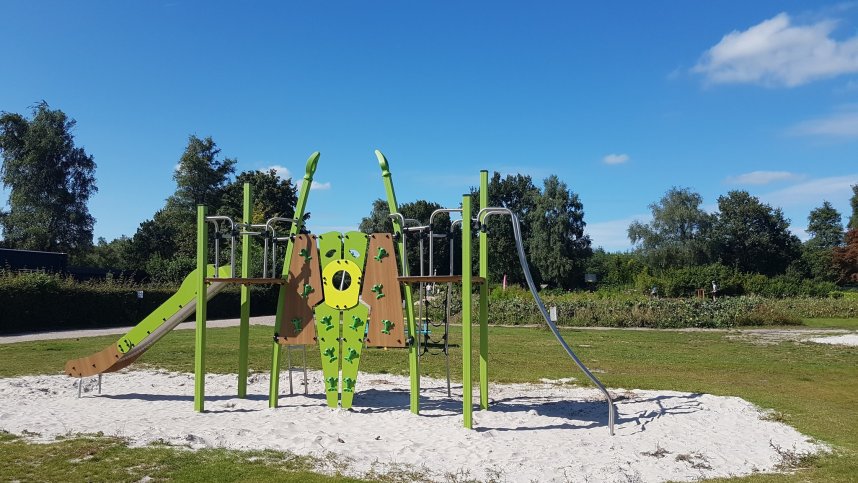 De Lente van Drenthe is located on the edge of the Gieten-Borger forest. Along with its attractive situation amidst forests and moorland, it is also just a short walk (200 m.) from ’t Nije Hemelriek. This is a large lake, with a maximum depth of 1.3 m, crystal clear water and a fine sandy beach. There is direct access to the many cycle, mountain bike and walking routes in the area. There are around 100 pitches for touring units here, all with 6A electricity and cable TV connections. The pitches are of a good size (a minimum of 100 sq.m). Electricity, water and drainage are available on 25 touring pitches. Enjoyable excursions for children are the Sprookjeshof in Zuidlaren and Kabouterland in Exloo. Close by are two sub-tropical pools.