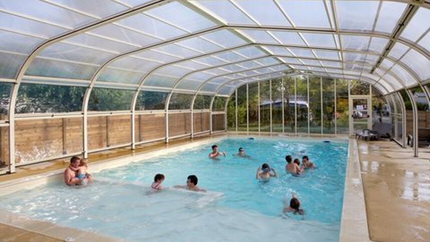 One older style toilet block (renovated in 2013) has new shower fittings and provides washbasins in cubicles. Accessible facilities (key access). Laundry area. Motorhome services. Bar/takeaway in high season. Pizza van once a week and seafood platters delivered in July/Aug. Covered and heated swimming pool. Play area. Boules. Activity and entertainment programme. Mobile homes for rent. Bicycle hire. WiFi (charged).