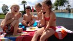 Two very clean and well appointed sanitary blocks include some washbasins in cabins and facilities for children. Accessible Toilet and shower facilities. Laundry facilities. Motorhome services. Bar/restaurant with terrace and large TVs and LCD projection. Snack bar. Heated outdoor swimming pool (15/5-15/9). Playground. Bicycle hire. Pool tables. Sports field. Entertainment for children and teenagers. WiFi over site (charged).
