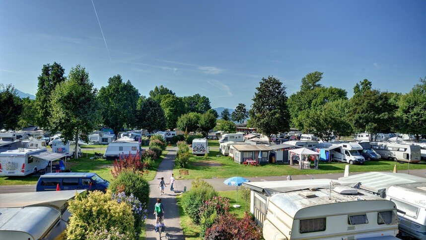 The ancient city of Lausanne spills down the hillside towards Lake Geneva until it meets the peaceful park in which this site is situated. Owned by the city, the managers have enhanced its neat and tidy appearance by planting many flowers and shrubs. Hard access roads separate the site into sections for tents, caravans and motorhomes, with 10A electrical connections in all parts, except the tent areas. Of the 350 pitches, about 96 are for touring units, 100 are for tents and the remainder for seasonal caravans. A few large pitches near the lake are suitable for American style motorhomes.