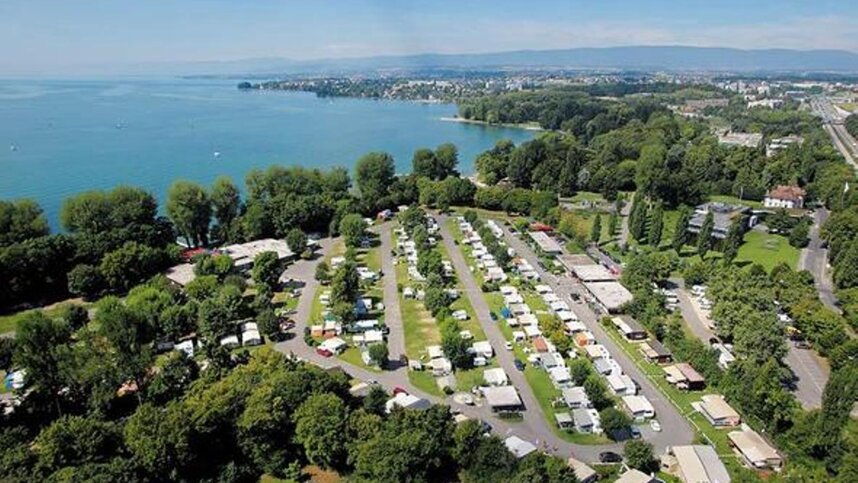 The lakeside bar/restaurant (also open to the public) provides occasional musical entertainment in season. The playground, games room, bar and restaurant are all close to the lakeside and do not disturb the majority of campers. Although only minutes from the city centre, only a gentle hum of traffic can be heard. A public footpath separates the site from the lakeside, but there is good access. The World HQ of the Olympic movement is adjacent in the pleasant park, which is also available for games and walking.