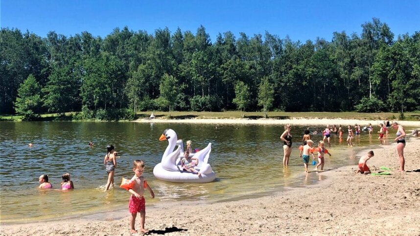 This site has around 80 spacious and grassy pitches, including comfort pitches with 16A electricity, located near the well-appointed toilet block and the lake. The standard pitches are located in the older part of the site and are slightly smaller with 4/6A electricity. Some hardstanding pitches overlooking the lake and safari tents are available to rent. The site is dotted with mature trees, which adds to the peaceful charm. In the centre of the site is a recreation lake for swimming with a zip wire and a shallow area for young children with its own beach. This is a popular spot with youngsters who can happily spend hours splashing about. For anglers, there is a well-stocked fishing lake.