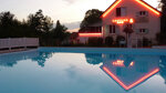 Two main sanitary units have mostly British style WCs, washbasins in cabins and showers. Laundry facilities and a baby bath. Accessible facilities. Bar provides food and a takeaway (1/4-30/9). Swimming pool, slide and paddling pool (Seasonal). Play area. Streams for children to fish. Minigolf. Games room. Entertainment for children (July/Aug). TV. Internet access and WiFi (charged).