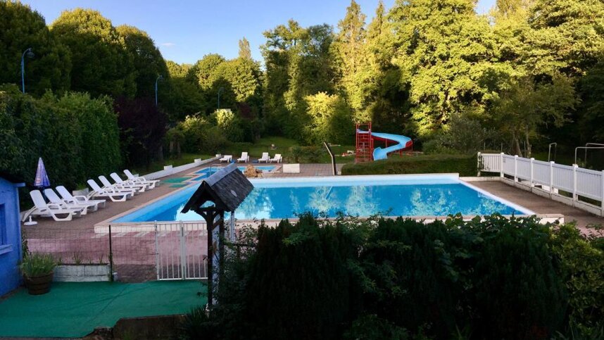 You are assured of a warm welcome at this attractive family run site, situated within walking distance of the village, in an area of rolling countryside, woodland, rivers and country villages and ideal for walking or cycling. The spacious 130 level grassed pitches (6A electricity, long leads advised) are mostly separated by hedges, with mature trees offering varying amounts of shade. Adjacent to the site there is a thermal spa with opportunities to ‘take the waters’ during a three-day session or a full blown cure of three weeks! Reception has details. There is an excellent restaurant almost opposite the campsite entrance and a casino in the village.
