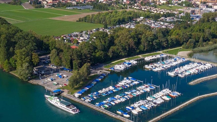 Le Landeron is signed from the Neuchâtel-Biel motorway, exit 19 and site is well signed from the town.
