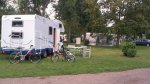 Modern, purpose-built, heated toilet block provides separate areas for men and women. Washbasins in cabins. Accessible facilities. Laundry. Motorhome services. Small bar with TV. Takeaway (June-Sept). Heated swimming pool (1/5-30/9). Bicycle and barbecue hire. Play area for under fives. WiFi.