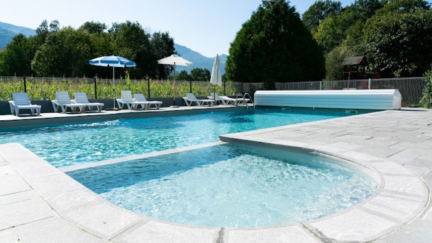The heated toilet block has showers, wash basins and wc’s. Accessible facility. Baby room. Family shower. Laundry. Dish washing area. Microwave. Chemical toilet point. Shop. Snack bar. Pizzeria. Takeaway meals. Bar. Freezer for ice packs. Outdoor swimming pool and toddler pool. Outdoor children’s playground with climbing frames, several slides, a seesaw and bouncy castle. Large football field. Volleyball court. Table tennis. Boules court. Mini golf course. Games room. Animal meadow. TV room. Wi-Fi zone free. Dogs and bbq’s allowed. Ski hire.