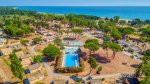 Domaine d’Anghione is a sprawling and site which is being steadily upgraded. It is solely for bungalows and mobile homes which occupy a good deal of space here. The traditional pool and paddling pool are very welcome in the summer heat. A huge equestrian centre is on site and horses may be hired. The beachside self-service restaurant has excellent sea views as does the adjacent bar. The site has direct access to a wonderful long beach, which is of fine sand and shelves gently into the blue waters. Entertainment is provided in high season for both adults and children.