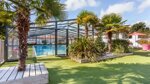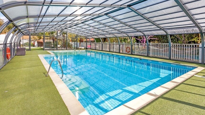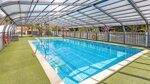 There is one block with solar powered hot water, 11 showers, 12 Sink cabins, baby bath, hose reel, chemical facilities, Accessible facilities and 4 urinals. There are also 12 WC's distributed across 3 blocks.The site offers total coverage WiFi (with charge). Indoor heated swimming pool and outdoor children's pool. Playground. Multiple sports facilities including, petanque, ping-pong (incl.loan of bats and balls), library in 3 languages, 4 bars, fireplace off season, events in season (concerts, dances, children's workshops, various competitions, lotto). Games room, billiards, lounges, restaurant, take-away and bread from 30 June to 3 September, laundromat washing machine and dryer facilities, mini farm and tourist information facilities.