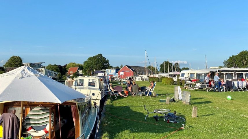 On site, there are 80 touring pitches, of which have 10-amp electric hook-up points available. Indicate whether you prefer morning or evening sun when booking, and the site team will accommodate your request. A separate camping field with a picnic area is available for larger groups. The campsite also features sixteen paved camper pitches, including three with direct waterway access.