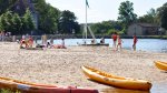 One clean toilet block is centrally located and has good accessible facilities. Washing machine and dryer. Activities room. TV room. Table tennis, volleyball, tennis, boules and football. Play area on beach. Supervised lake swimming (July/Aug). Fishing and canoeing. Snack bar, bar and gourmet restaurant (in a former mill) beside the lake. The lake beach is classified as ‘Handiplage’, fully equipped and adapted for those with reduced mobility.