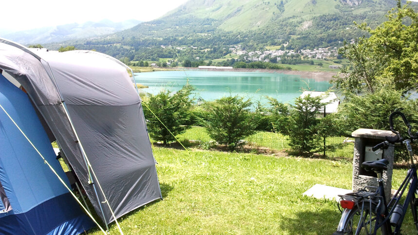 Camping du Lac is located in a valley in the Pyrenees National Park with views of the surrounding mountains, ideal for those who want peace and quiet, and perfect for nature lovers. There are 90 shady grass pitches, 76 for touring, with 5/10A electricity and closely cut hedges. The swimming pool is fenced and gated. In high season, bookings can be made for a large range of activities including walking, mountain climbing, canoeing, rafting, paragliding, hang-gliding, mountain biking and fishing. The owners of this site have very high standards.