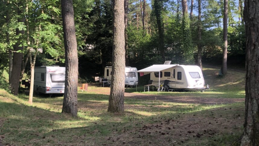 The site consists of two areas, a very large area with Mobile Homes and Chalets to rent, which you pass through to get to a much smaller area where the 80 touring pitches are. These vary in size from 80 m2 to 100 m2, 73 have 10 amp hookups, and you can select sun or shade; if you are fortunate, there are nine lakeside pitches, all pitches are close to the lake, and you do have direct access to swim or picnic.