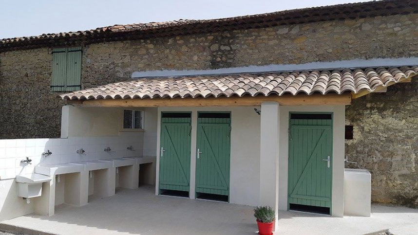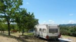 The toilet block is clean and modern, with powerful showers. This is a site where you feel like you are going back in time as there is no restaurant or Wi-Fi on site except for at the reception. There is also no restaurant, so you would need to cook for yourself unless you wanted to travel to the nearby Saint-Christol-lès-Alès. A baker arrives daily at the site early at 8:30 am and rings a bell to notify you that he is there if you want fresh bread. The site does have a small outdoor swimming pool with plenty of sun loungers to choose from.
