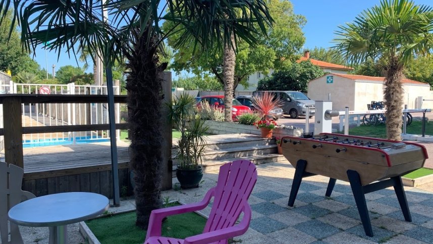 Accessible sanitary facilities, Laundry facilities, Washing up area, Bar, Snack bar, Takeaway food, Themed dinners, Outdoor swimming pool, Children's playground, Table tennis, Table football, Petanque, Loan of board games, Bicycle hire, BBQ's allowed. WIFI, Pets allowed.