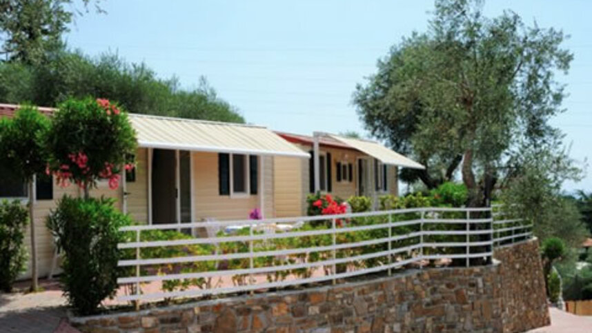Camping Edy is close to Diano Marina and covers an area of about 2.5 hectares. It is a steeply sloping site with panoramic views from the top-level over the surrounding olive groves. The pitches for touring units are on the lowest level on gravel with some small hedges for separation, and some are in the shade of mature olive trees. All have electricity, water and drainage. The toilet blocks are some distance and up steep roadways. A separate area is reserved for tents. Several designs of modern, fully equipped mobile homes can be rented. The convivial bar and terrace on the top level are pleasant spots to relax.