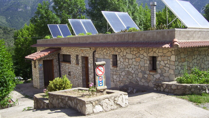 The short scenic drive through the mountains to reach this site is breathtakingly beautiful. This attractively terraced campsite next to the Cadi-Moixer Natural Park, is not far from the majestic Pedraforca mountain, and the area is a favourite for Catalan climbers and walkers. Access on the site is quite easy for large units, although the road from Guardiola de Berguedà is twisting. Of the 73 grass or gravel pitches, there are 40 for touring, all with 6A electricity. The campsite was recently acquired by Huttopia Group, and renovations are planned for 2024.