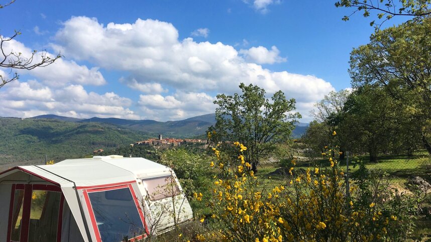 In total, there are just 30 level touring pitches, all between 80-120 sq.m. and all have 6/10A electricity. The pitches are beautifully set in 2.5 hectares of the most attractive natural woodland. Owners of large caravans and motorhomes (max. 7m.) should contact the site first due to the minimal number of suitable pitches. There are rough tables and chairs made from local stone, a fountain fed by a well and a small stream which traces a route through the site.
