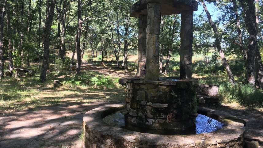 The road to Miranda del Castañar is 7 km. northeast of the village of Cepeda. Turn off main SA-225 road signed Miranda. After 1.2 km. downhill towards town look for left turn onto a concrete road. Follow for 1.1 km. (a short stretch unmade) and site is on right.