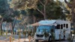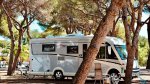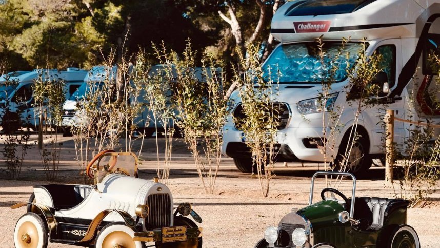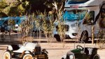 This large, pine-covered site beside fields of vines is 900 m. from the beach, close to the pleasant town of Sitges. This is an attractive resort with seaside entertainments and is well worth exploring. The site has 526 pitches, many of which are occupied by seasonal caravans or chalets but are separate from the touring area. A central area on dusty, baked earth beneath the trees is devoted to touring caravans and a corner of the site has 28 pitches with water, mainly used for large motorhomes. All have 6A electricity (Europlugs). There is an open field for tents. A cosy, refurbished bar and restaurant with a small terrace offers a varied menu.