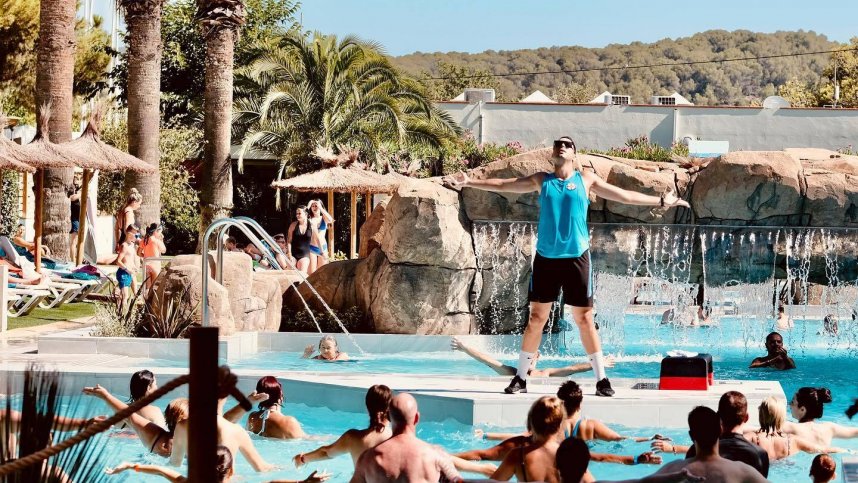 Next to it are other single storey buildings including a small supermarket; these are along the site perimeter next to the road, and absorb most of the traffic noise. The restaurant has a good local reputation – the menu of the day is great value. A traditional bar is alongside and from here you can see the pretty mosaic-clad play area. An entertainment programme is organised for children in summer and a variety of family adventure activities and excursions (including a trip to Barcelona) can be organised through reception.