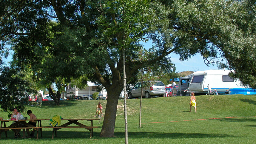 Run by the friendly owner, Anna Beriain, the site is split into separate permanent and touring sections. The touring area has 201 good-sized flat t pitches with electricity and water hook-up points available. 101 of which are delimited. All are grassy, and though many trees have been planted around the site, shade can still be at a premium.