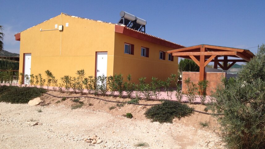 This tranquil and peaceful adult only 42 pitch touring park is family run and is located in a small hamlet just outside the quaint traditional town of Pinoso (El Pinos), on the Valencian/Murcia border in south east Spain. All pitches are of semi hard standing and clearly defined with hedges or fauna and are 10m x 12m (120m2) or larger with 16 amp electrical hook up points. The whole of the site is suitable for ambulant and wheel chair users. A newly built toilet and shower block including accessible wet rooms with unlimited hot water is maintained through the day to an exceptionally high standard.