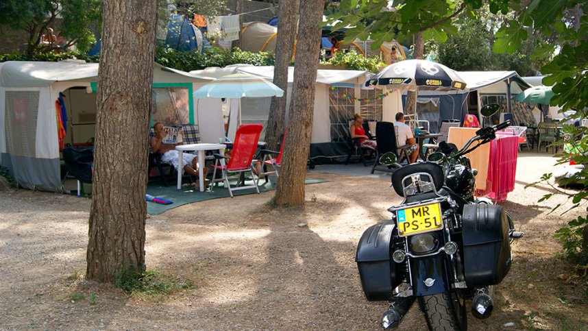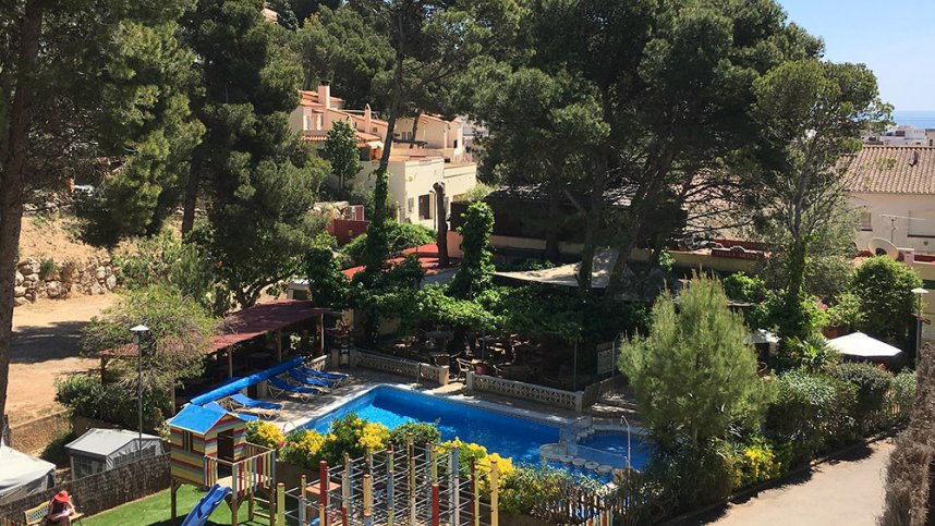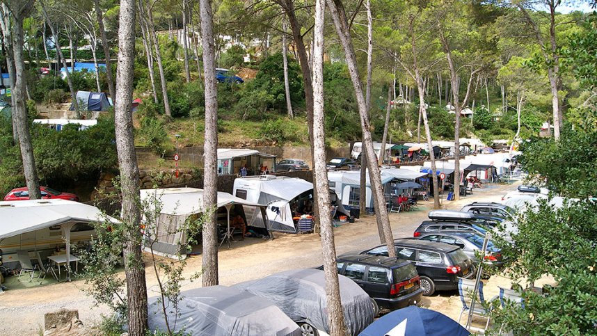 This friendly Belgian-run site has very limited facilities, but a short 300 m. walk down the hill brings you into the heart of Estartit. The site itself is surprisingly quiet, considering its proximity to the town. Set amongst tall pine trees (which provide complete shade), in a narrow valley, it has 173 terraced touring pitches all with electrical connections (2/6A). These are best suited for campers with tents as there are some very steep drops between the terraces. However, there are two sand/gravel areas for a small number of motorhomes and caravans (booking essential in high season).