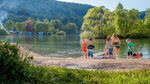 Three good quality sanitary blocks can be heated and have free showers, washbasins (open and in cabins), baby rooms and accessible facilities. Laundry. Motorhome services. Café and shop (both summer only). Restaurant by entrance open all day (closed Feb). Watersports. Boat and bicycle hire. Lake swimming. Fishing. Minigolf. Playground. Sauna. Solarium. Disco (high season). Internet access.